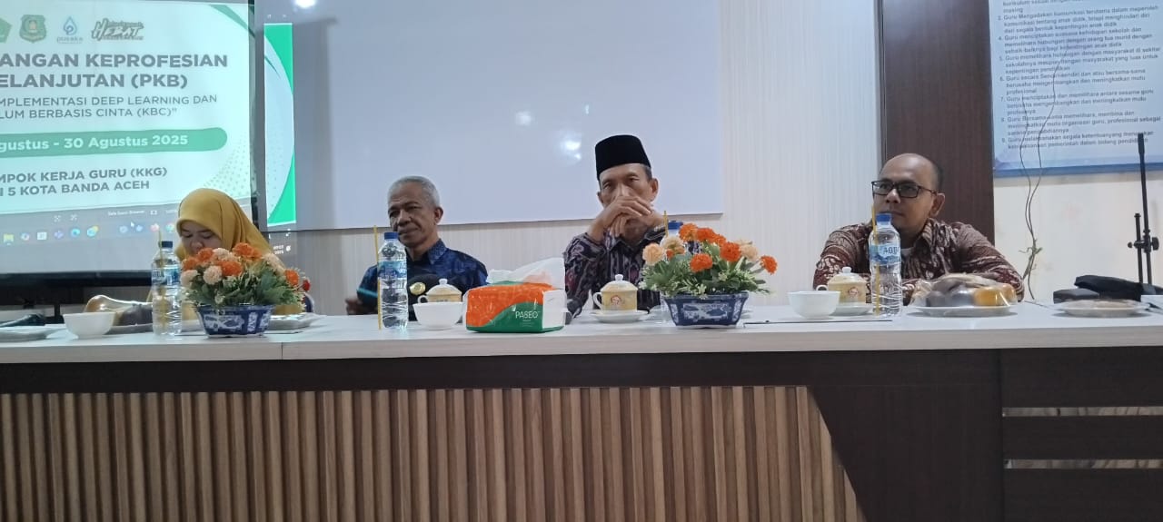 Banda Aceh, 31 Agustus 2025 – Kelompok Kerja Guru (KKG) MIN 5 Kota Banda Aceh kembali menggelar kegiatan Workshop Deep Learning dan Kurikulum Berbasis Cinta yang mengusung tema “Desain Modul Deep Leraning Kurikulum Berbasis Cinta” . Kegiatan ini berlangsung selama tiga hari, mulai tanggal 28-30 Agustus 2025, diikuti oleh seluruh guru kelas dan guru mata pelajaran dengan penuh antusias turut membersamai pengawas pembina madrasah Rosnidar, S.Ag.