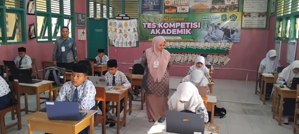 Banda Aceh-Pelaksanaan Tes Kemampuan Akademik (TKA) di MIN 5 Banda Aceh berlangsung sukses tanpa kendala jaringan pada Rabu hingga Kamis, 22–23 April 2026. TKA yang  diikuti 140 siswa kelas VI  berlangsung dengan tertib dan lancar menggunakan ruang kelas digital dan ruang laboratorium komputer.