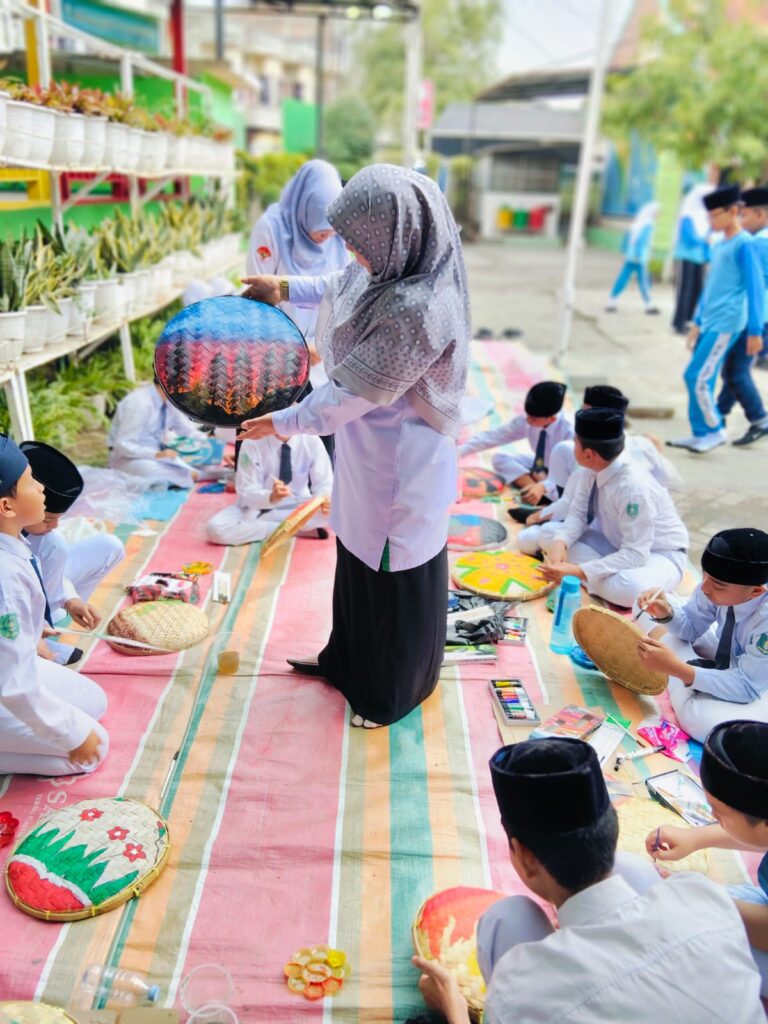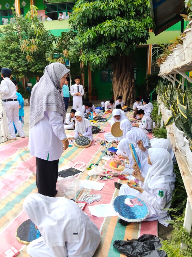 Uniknya, media yang digunakan bukanlah kanvas biasa, melainkan benda-benda keseharian yaitu tampah bambu dan sandal jepit. Dengan mengusung tema bebas, para siswa dibebaskan menumpahkan imajinasi mereka menjadi karya seni yang bernilai tinggi.