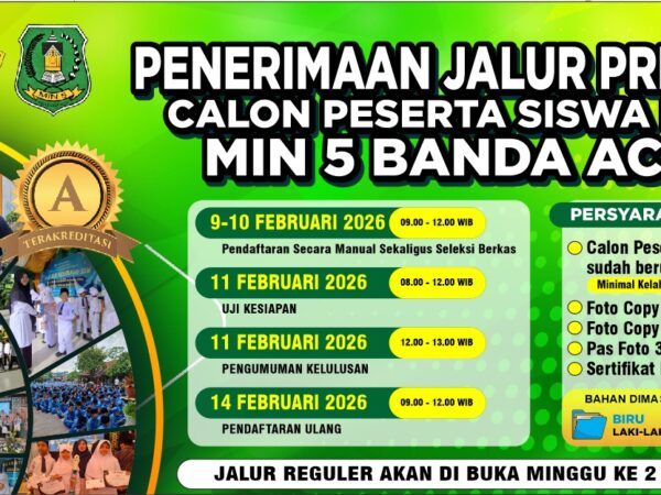 Banda Aceh- Madrasah Ibtidaiyah Negeri (MIN) 5 Banda Aceh kembali mencatatkan prestasi luar biasa dalam ajang bergengsi Festival Intelektual, Talenta,..